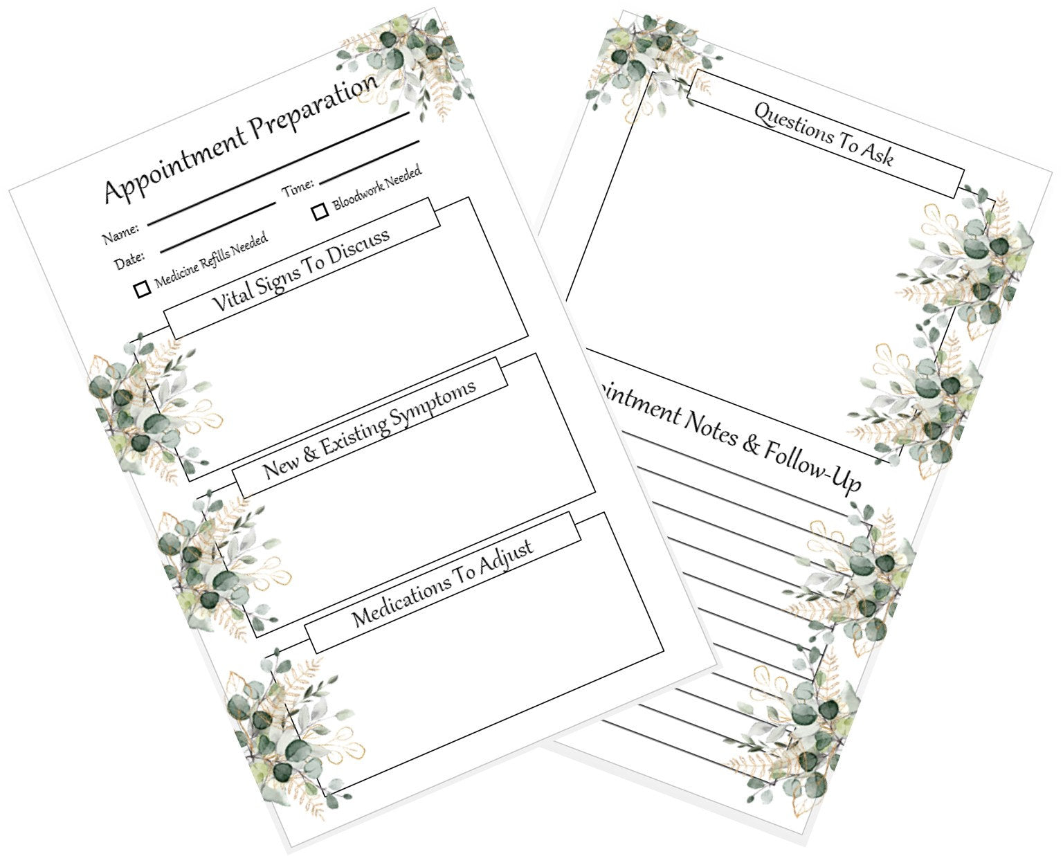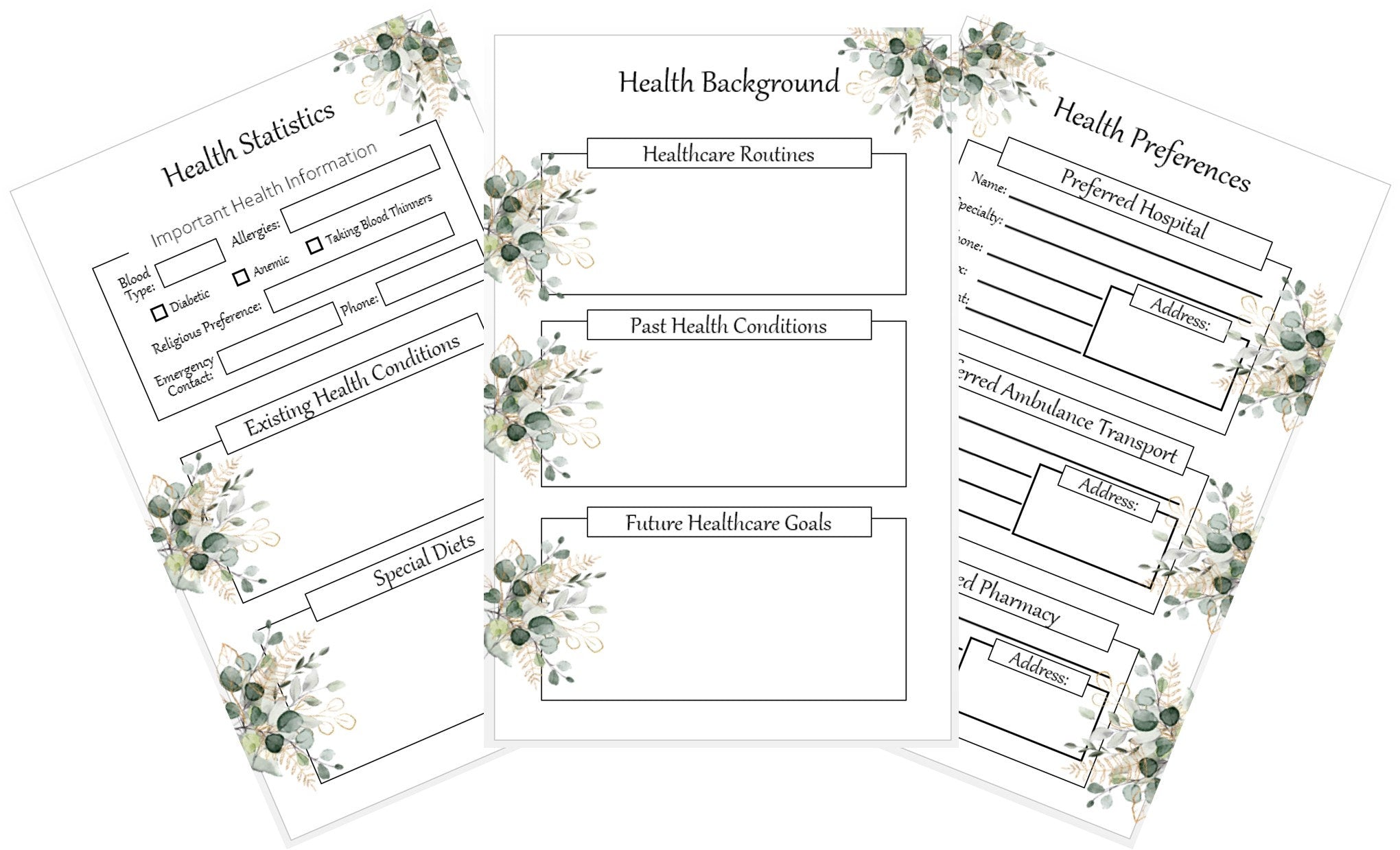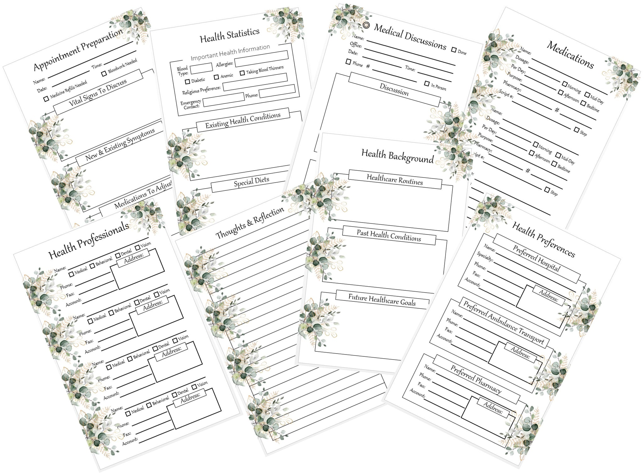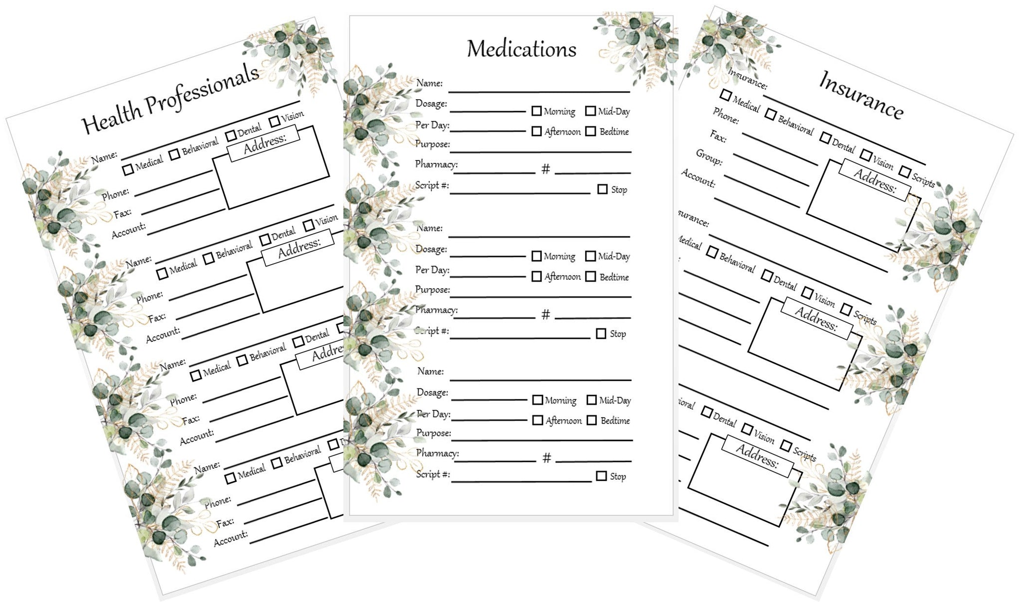 ■ Our Health Resources pages can be used on their own or as a compliment to the Daily Health Journal to form a very comprehensive and ongoing health profile. These bonus pages are a great way to keep track of all your important health information and can be a critical resource for anyone with chronic or ongoing health issues as well as a great way to keep track of your whole family’s health resources. This can be a functional and thoughtful gift to an elderly parent or friend experiencing health issues. These valuable resources can be used as a reference anytime you go to a doctor’s appointment, hospital visit, or have a phone call with your insurance company or pharmacy.