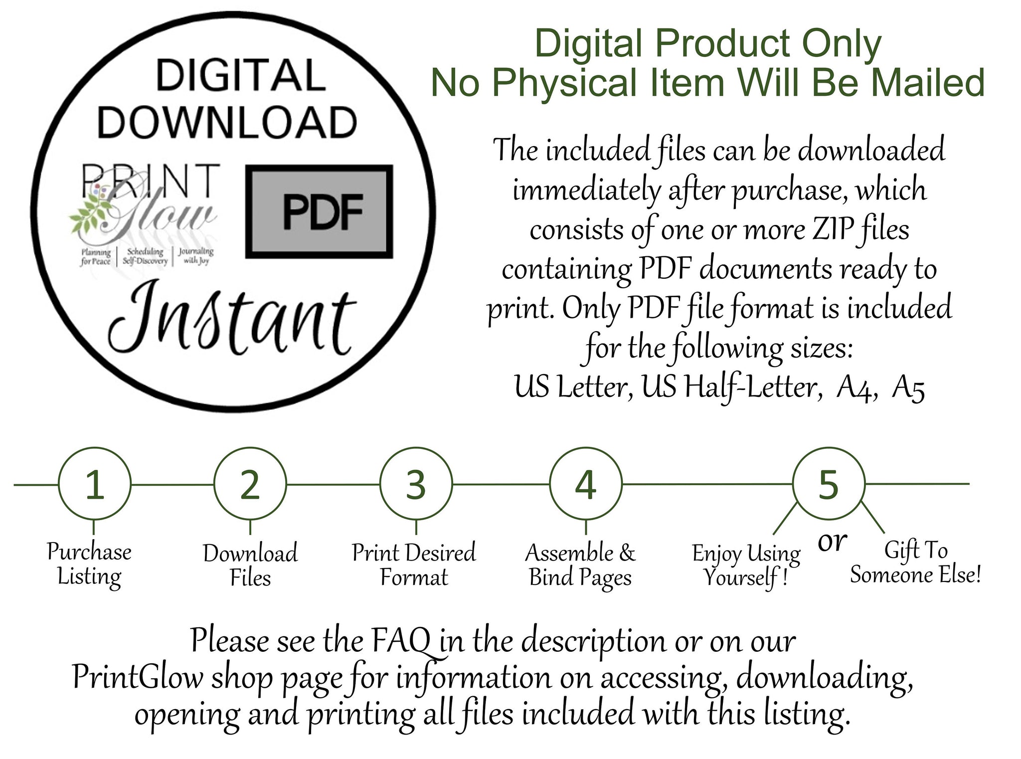 BONUS: A set of gift cards with the same collection theme is included with this listing! Use these cards to gift your PrintGlow product, after printing and assembly, so someone special can enjoy the peace, self-discovery and joy of planning and journaling.