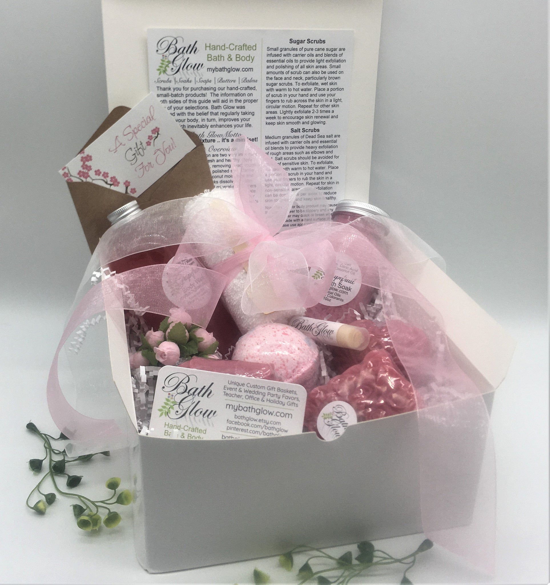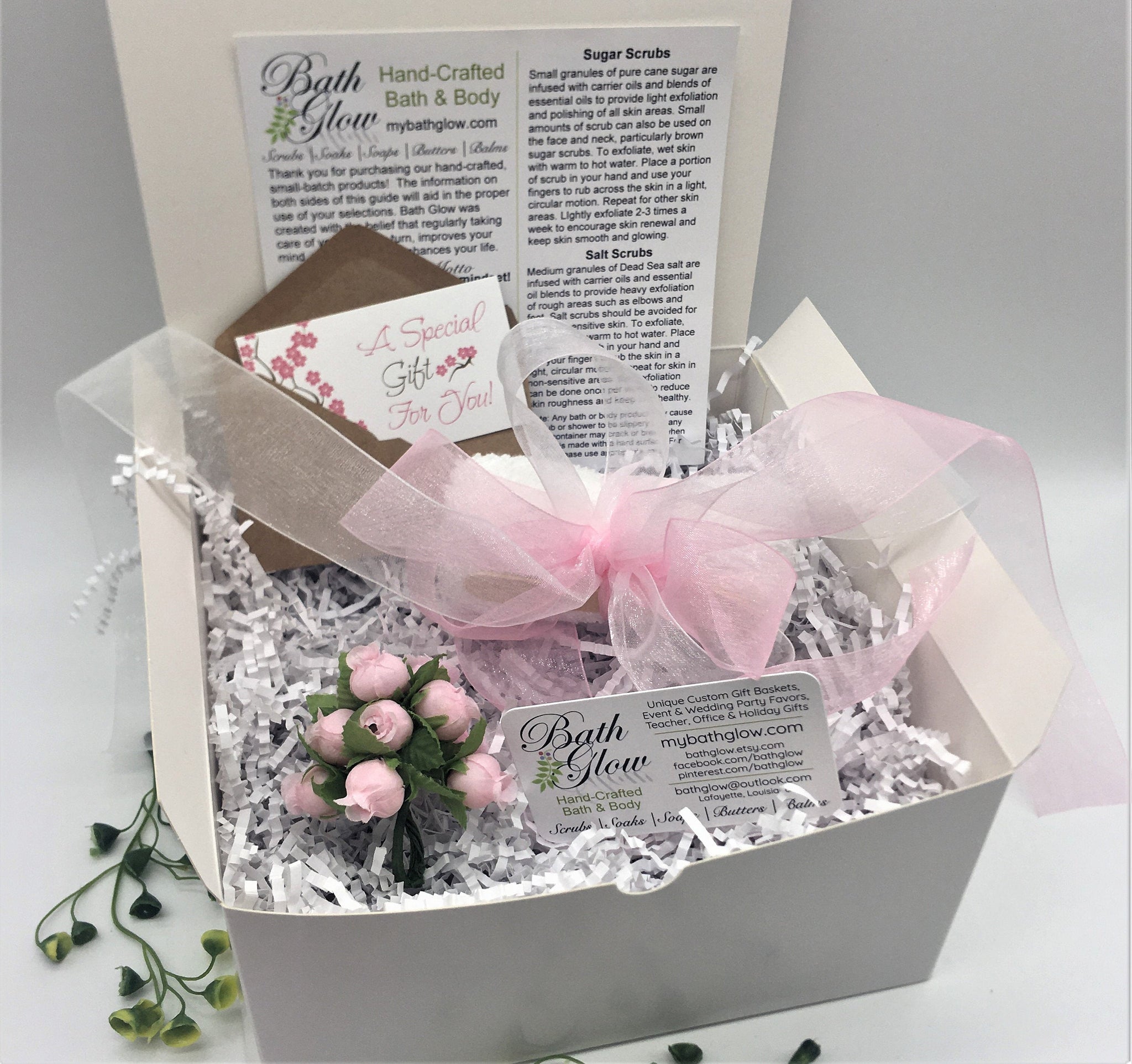 ♥ We are very proud of the ingredients that go into our products and the creativity used to develop and package them. All gift sets include full-size products .. Sugar Scrubs, Salt Scrubs, Body Soaks, Body Washes .. Glycerin & Shea Butter Soaps .. Artisan Layered Soaps .. Bath bombs .. Body Butters & Balms. All-natural ingredients, beautiful, unique containers, elegant labeling, useful accessories, free shipping .. These gift sets are what you would expect from high-end, hand-crafted products. We are just as excited as you are to present our gift sets to your family and friends.