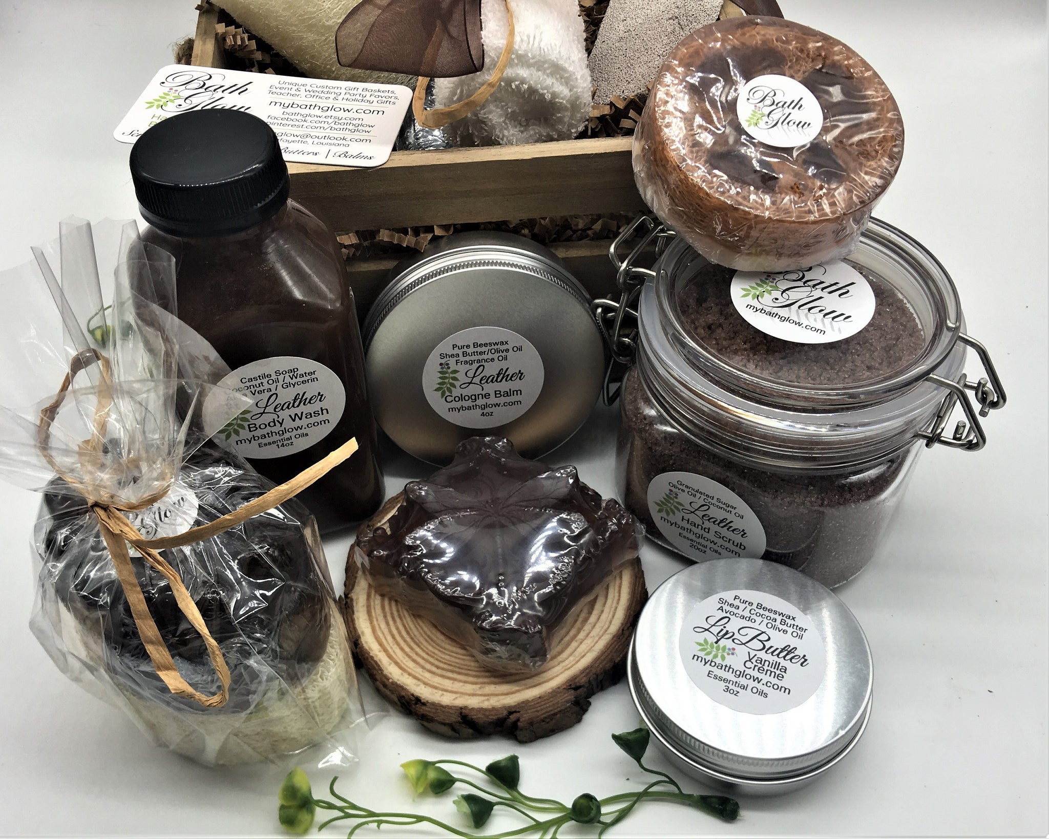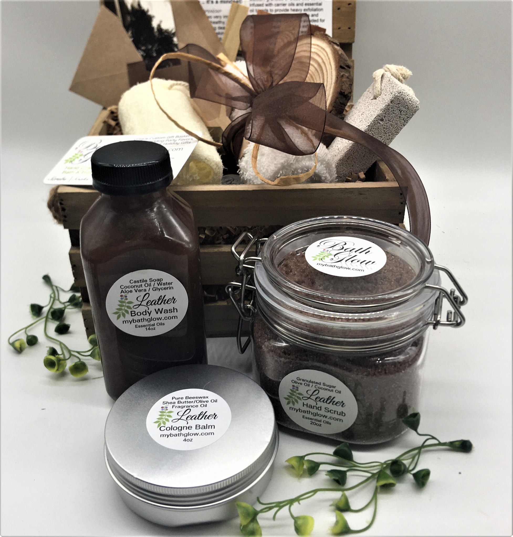 LEATHER MASCULINE CRATE SHOWER SET