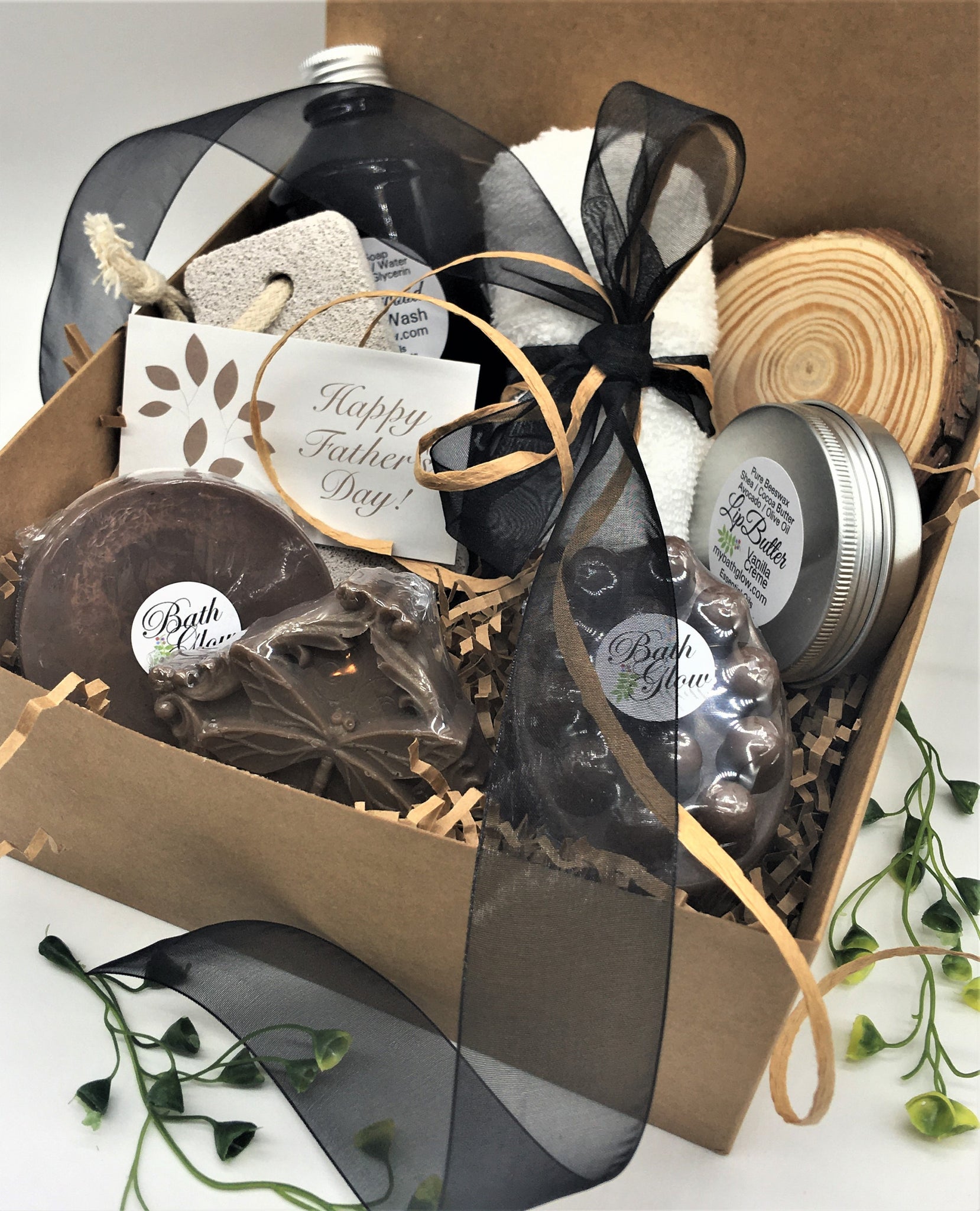 ■ This shower collection has all the essentials in a box set to make the perfect gift! Body Wash, Loofah Soap, Glycerin Soap, Massage Soap, Lip Butter & Accessories! Included accessories .. Pumice Stone, Tree Slice Soap Dish. A 100% cotton, absorbent washcloth with black ribbon and twine is provided to complete the masculine spa experience! If you've been looking for an essentials masculine spa set to give as a gift for someone special .. this shower basket is it!