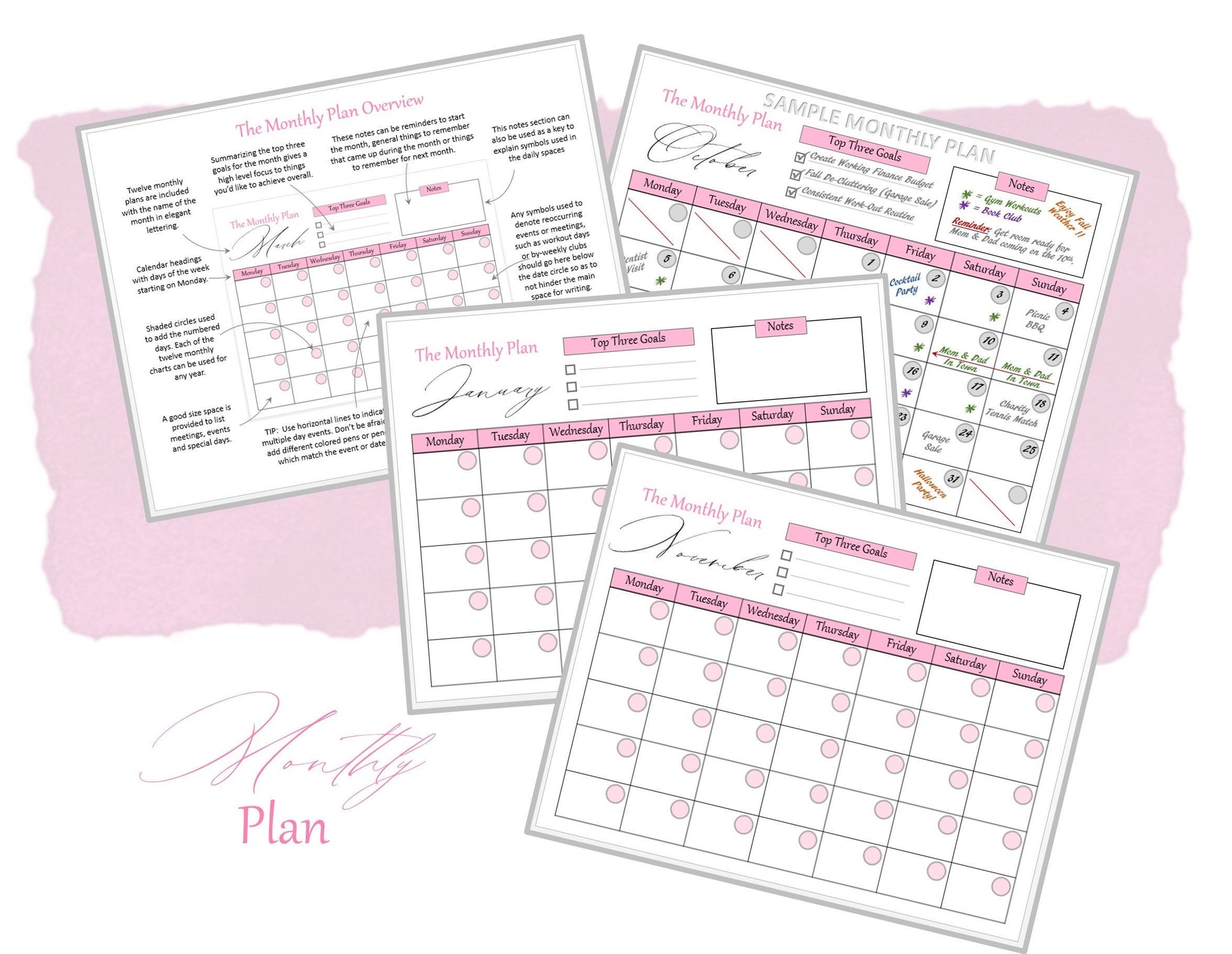 BONUS: An overview with tips and ideas along with completed pages for inspiration are included for each planner page!