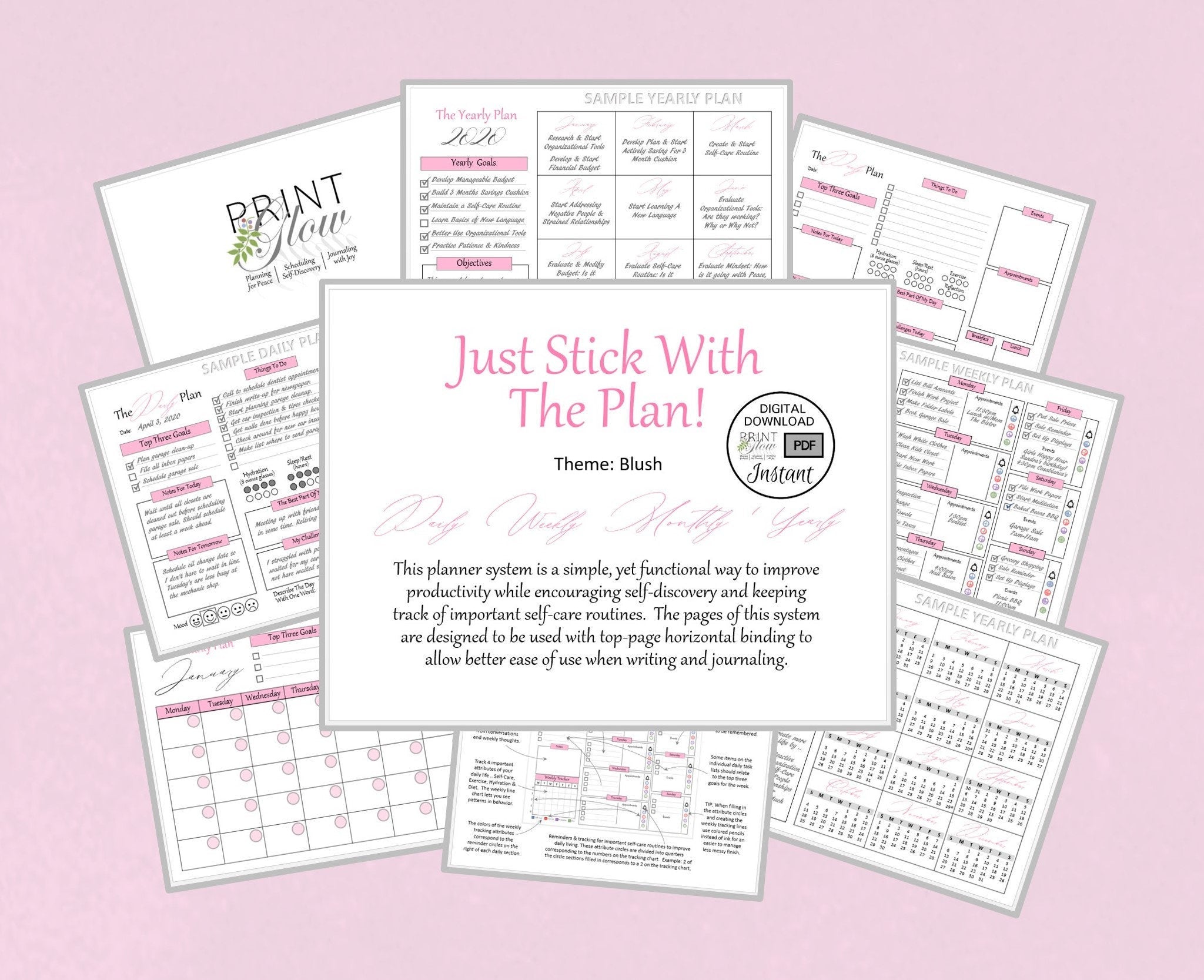 ■ Our "Just Stick With The Plan!" planner has everything you need for simple, productive planning and maintaining your life. This bundle includes Daily, Weekly, Monthly & Yearly plan pages. Use all or only some to fit your planning style. You will love the touch of self-discovery built into each page!