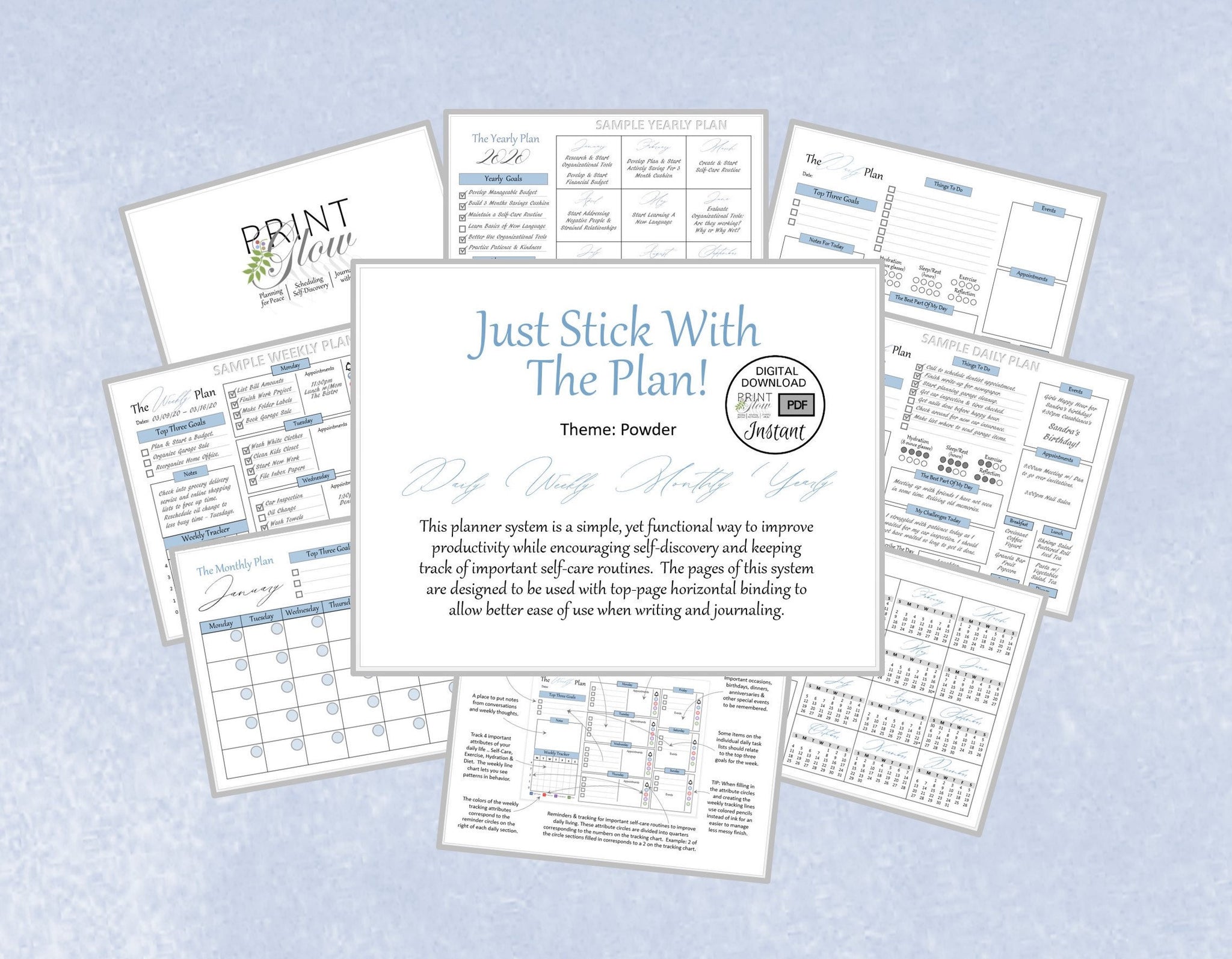 ■ Our "Just Stick With The Plan!" planner has everything you need for simple, productive planning and maintaining your life. This bundle includes Daily, Weekly, Monthly & Yearly plan pages. Use all or only some to fit your planning style. You will love the touch of self-discovery built into each page!