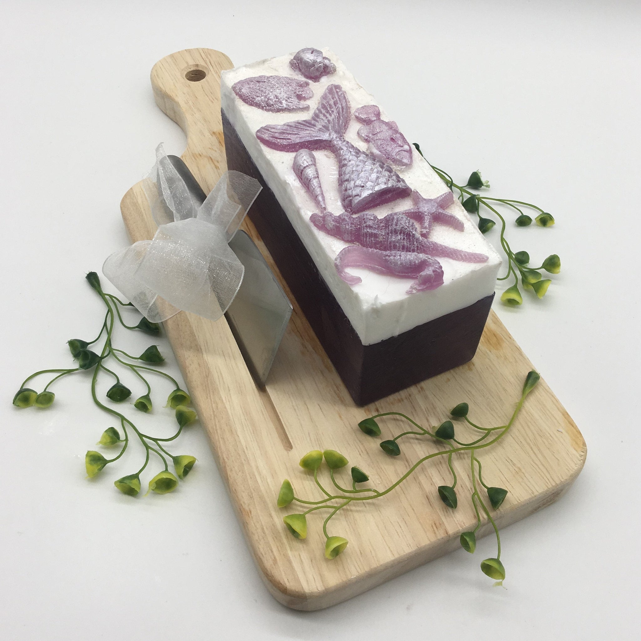 MERMAID SOAP LOAF CUTTING SET: LAVENDER WITH SEASHORE FIGURES