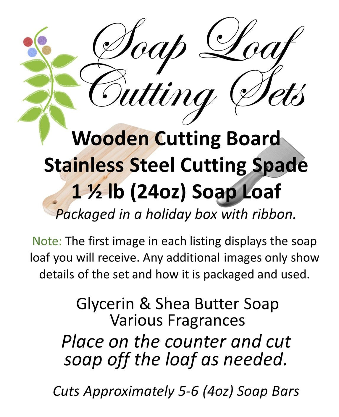 • The first image in this listing displays the soap loaf type you will actually receive.