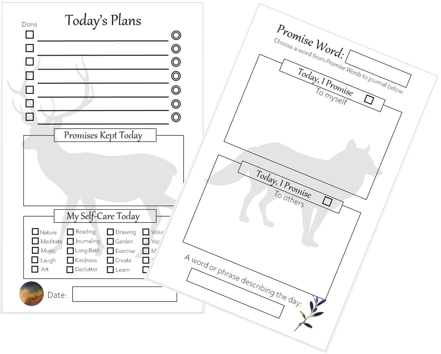 ■ Our Wilderness Collection contains rugged, masculine background elements which lends itself to a feeling of serene reflection. These planners are perfect for people want a simpler planning experience. Life is stressful enough .. your planner should not add to that stress. Our planners can easily be used by older adults and young first-time planner users who don’t require complicated, in-depth planners. Those with challenges such as anxiety, depression and other imbalances will appreciate the useful prompts for easier flow of words for journaling.