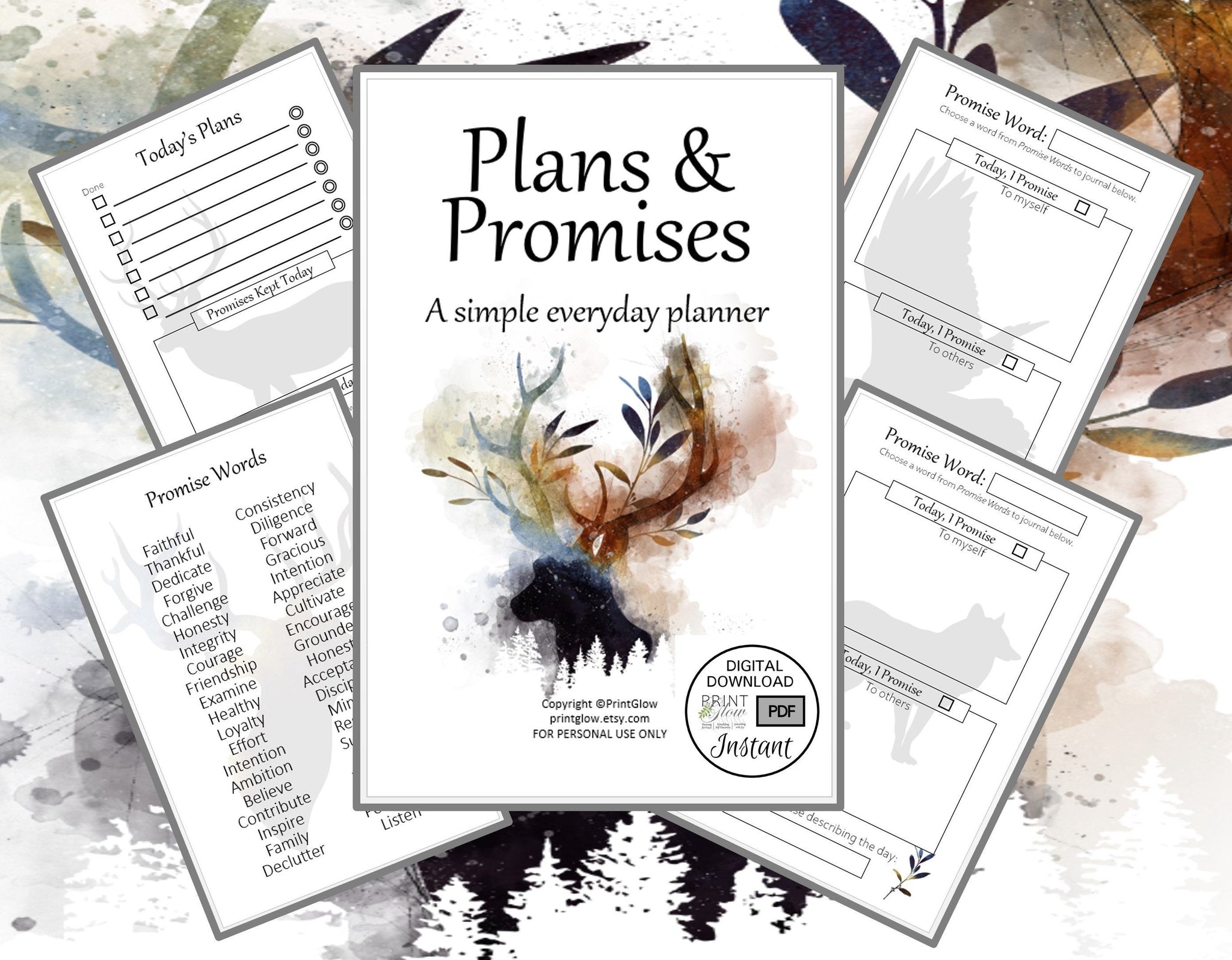 BONUS: A set of gift cards with the same collection theme is included with this listing! Use these cards to gift your PrintGlow product, after printing and assembly, so someone special can enjoy the peace, self-discovery and joy of planning and journaling.