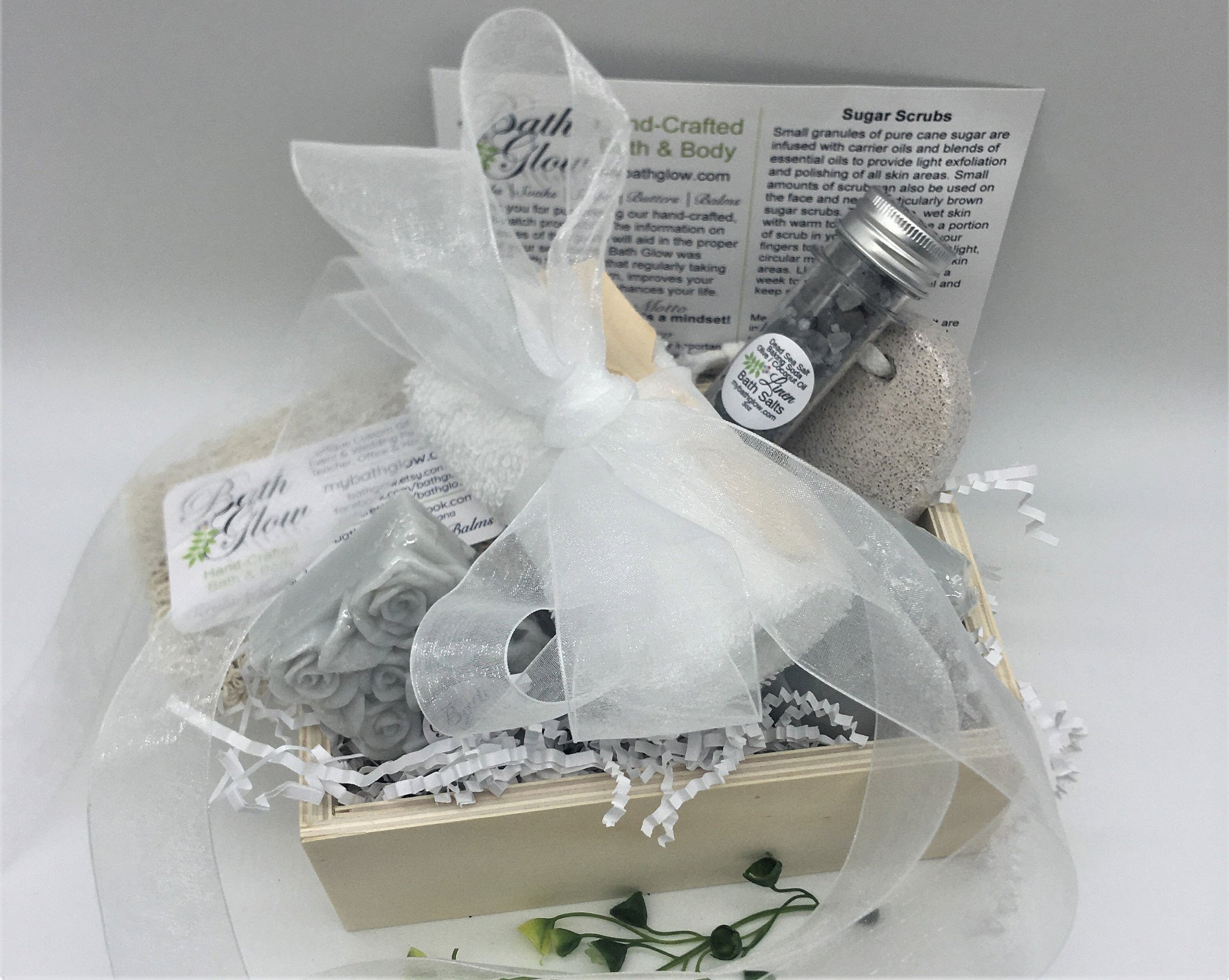 ♥ We are very proud of the ingredients that go into our products and the creativity used to develop and package them. All gift sets include full-size products .. Sugar Scrubs, Salt Scrubs, Body Soaks, Body Washes .. Glycerin & Shea Butter Soaps .. Artisan Layered Soaps .. Bath bombs .. Body Butters & Balms. All-natural ingredients, beautiful, unique containers, elegant labeling, useful accessories, free shipping .. These gift sets are what you would expect from high-end, hand-crafted products. We are just as excited as you are to present our gift sets to your family and friends.
