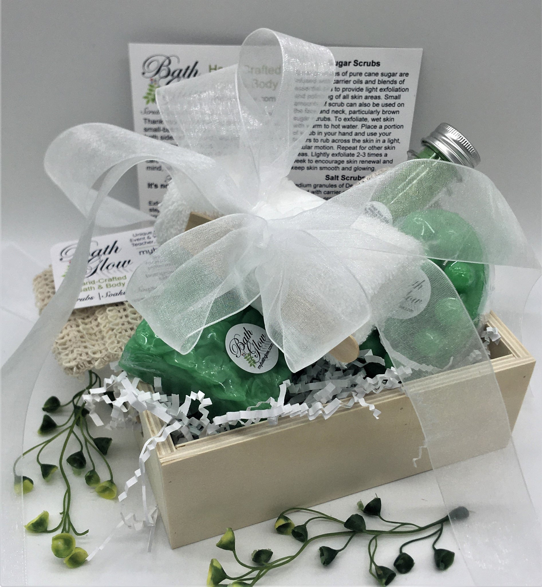 ■ Included in the set is a 100% cotton, absorbent washcloth tied with a beautiful organza ribbon.